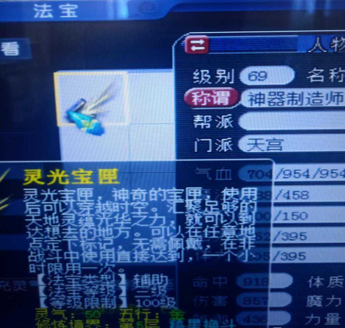 月光宝盒现在已经更名为灵光宝匣,而灵光宝匣的作用就是可以将玩家的角色传送到一个已经制定的标点上,在某些任务中还是比较好用的,但是小编却发现上面的这位玩家有一点问题,可以看到上面的这位玩家目前是69级的,但是他的法宝栏中却存在着一个灵光宝匣,这是什么情况呢?是系统出现bug了吗?还是上面这位玩家的角色曾经到达过109级。