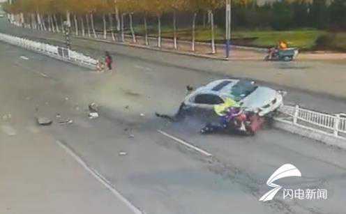 轿车与电动车被撞毁瞬间。