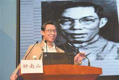 2016年12月3日,省人民医院建院70周年,医院邀请钟南山院士作报告。背后是他的父亲钟世藩的照片。记者乔军伟摄