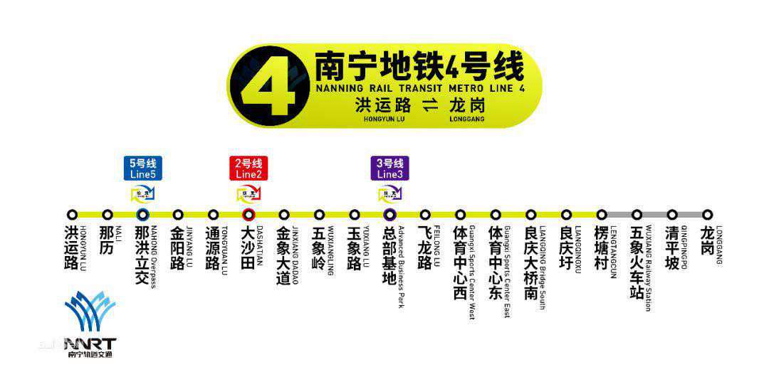 南宁地铁4号线一期工程,是南宁市轨道交通线网中东西向的骨干线,线路西起洪运路站,经洪历路、那洪大道、五象大道、联合路到达龙岗站。线路途经大沙田成熟区、五象新区、五象火车站等主要区域。4号线一期工程全长24.6km,共设19座车站,设五象车辆段一座。