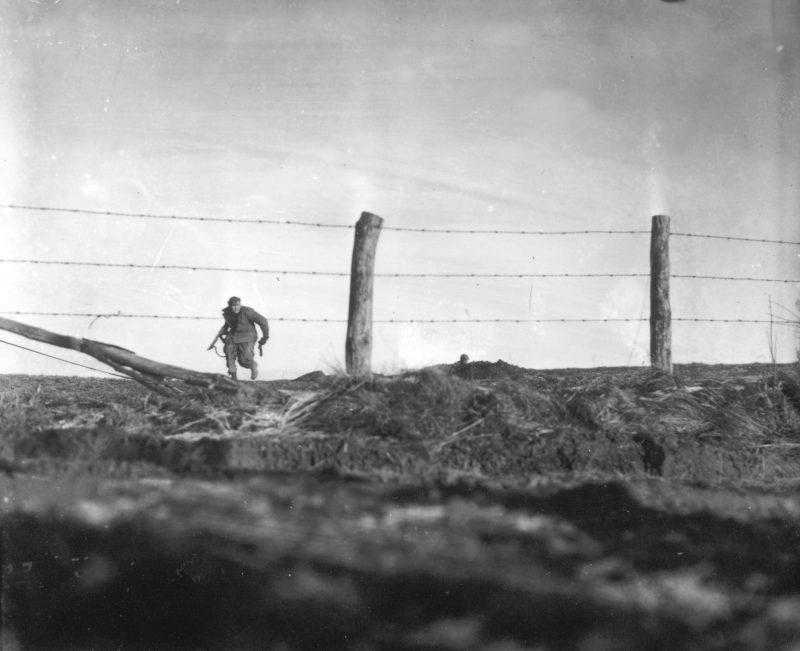 ▲1944年12月24日,一名来自82空降师的"步兵"正在穿越敌军火力网,他的身后还有一名同伴。《兄弟连》中E连连长温特斯曾对撤下的美军步兵说过"伞兵天生就是被包围的",而没有了"翅膀"的空降兵也能当步兵使用。照片摄于比利时。