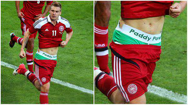 另外,他还在欧洲杯赛场上干过一件很出格的事情,别人都说脱衣庆祝,本特纳却来了个脱裤庆祝,此举就是为了露出内裤上“PaddyPower”博彩公司的字样。