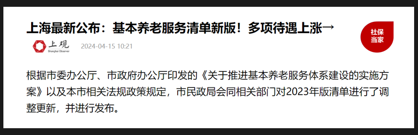 近期,上海公布了《上海市基本养老服务清单(2024年版)》,其中有多项养老待遇标准相比去年有所提高,养老保障也更好了,那么对于年满65岁的老人来说,可以获得哪些优待呢?