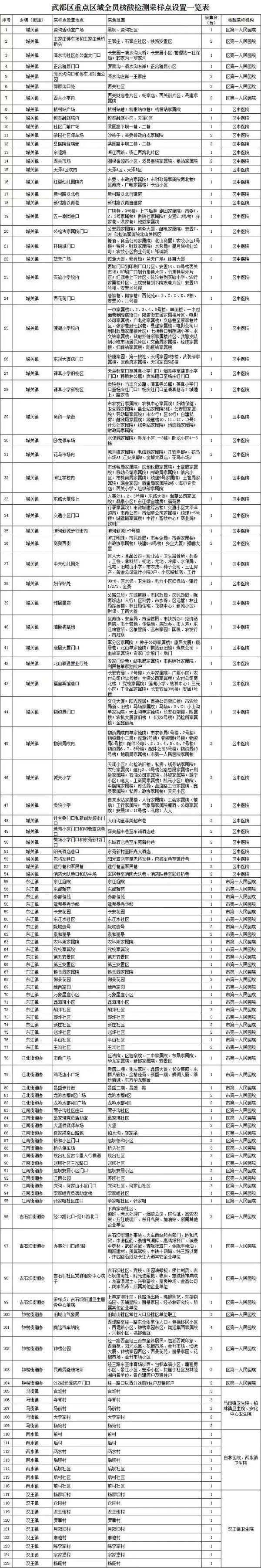 附:武都区重点区域全员核酸检测采样点设置一览表