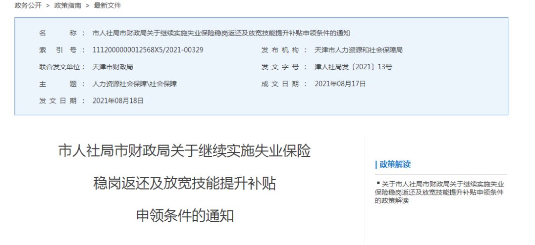近日,天津市人社局市财政局发布《关于继续实施失业保险稳岗返还及放宽技能提升补贴申领条件的通知》,明确了天津将继续实施失业保险稳岗返还、继续放宽技能提升补贴申领条件等有关事项。