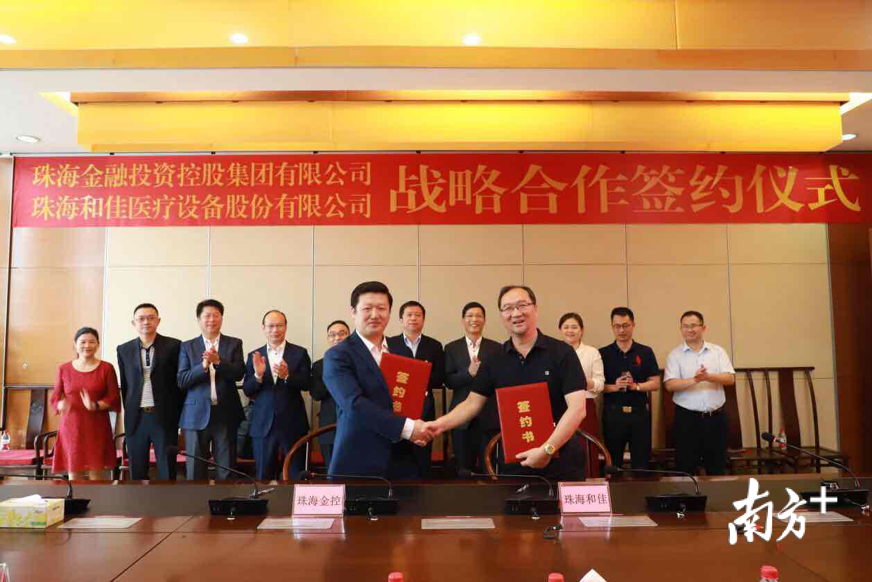 5月30日,珠海金融投资控股集团有限公司与珠海和佳医疗设备股份有限公司签署战略合作框架协议,双方将在证券、并购基金、普惠金融、保理、租赁、保险等业务方面开展合作。珠海金控总经理谢伟、和佳股份董事长郝镇熙出席战略合作协议签约仪式。
