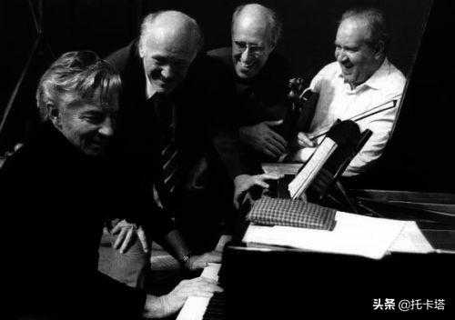 卡拉扬有时也有奇思妙想,比方说他指挥的马勒。可是在三重协奏曲(贝多芬)中他却严苛极了!那次录音简直像打仗:卡拉扬和罗斯特罗波维奇是一帮,而我和奥伊斯特拉赫一伙对着乾!卡拉扬感到奇怪,为什么我总看上去闷闷不乐?因为这其中有些挺浅薄无聊的事情,奥伊斯特拉赫也不开心,而罗斯特罗波维奇总想出风头。卡拉扬对速度判断有误,我不喜欢这速度,奥伊斯特拉赫也表示反感。就是在第二乐章,罗斯特罗波维奇觉得排够了,卡拉扬按照他的一贯作风说:"行了,这样没问题!"