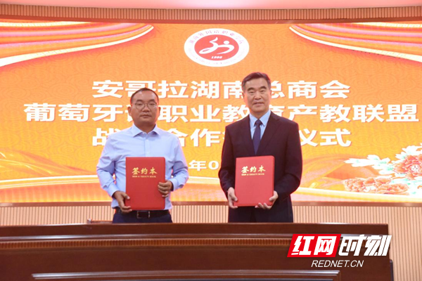安哥拉中国总商会、湖南总商会分别与葡语职教产教联盟签订战略合作协议。