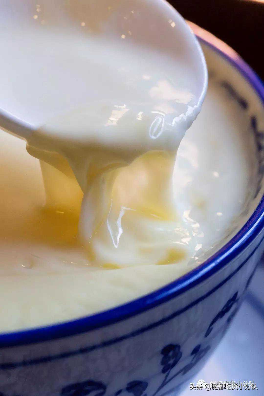 沿着碗壁轻轻一刮,是结起的一层奶皮。往下舀一勺,细腻顺滑,入口即化。是那些用奶精制成的双皮奶绝对达不到的柔嫩奶香。