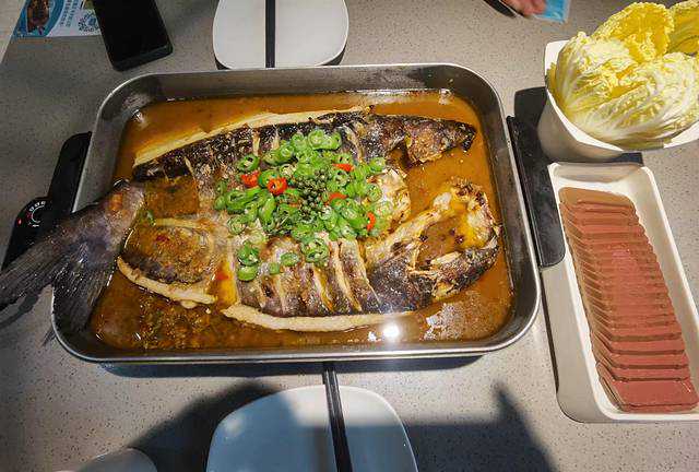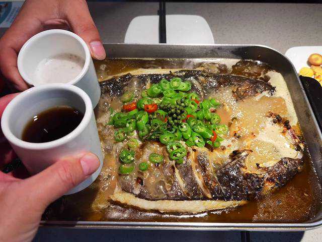 招牌特色,还有麻辣、酱香等8种不同口味的特色烤鱼,青花椒烤鱼味道不错,不过我们吃的那一条鱼不是现杀现烤的,口感明显差了很多,强烈吐槽!烤鱼的鱼一定要新鲜才好吃,现杀现烤味道才好呢。