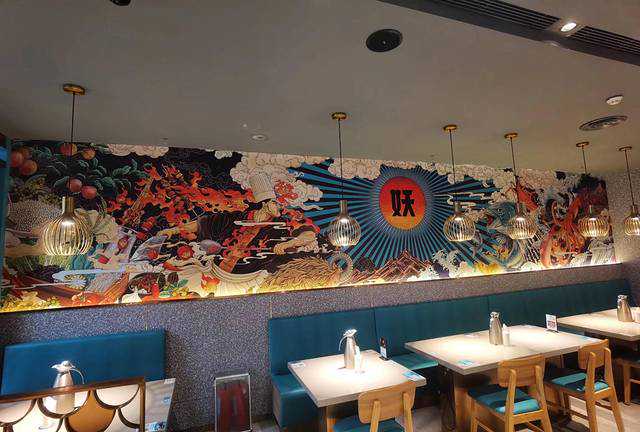 半天妖。这家餐厅在昆山衡山路经开万达广场四楼,在我们毫无目的地寻找吃的地方时,看到了这个店,顿时被这个“妖”字给迷惑住了,于是长驱直入,想看看它到底是如何“妖”的。