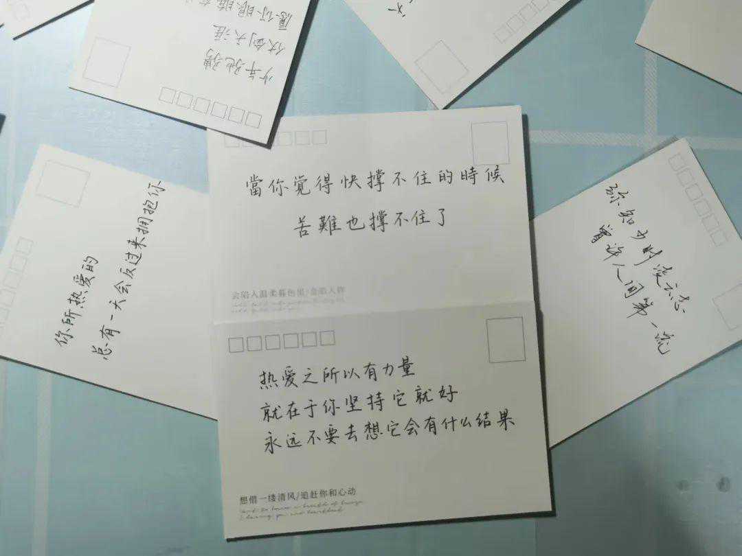 文传学院组织团委学生会的同学们以手写卡片的形式向考研学子们表达祝福。卡片上书写了“前路漫漫亦灿灿,你们终将上岸”“天顺其然,地顺其性,人顺其变,一切都是刚刚好”“云程发轫,培风图南”等美好祝愿。在收到这些饱含亲切问候与诚挚祝福的卡片后,考研学子内心涌动,感慨万千。