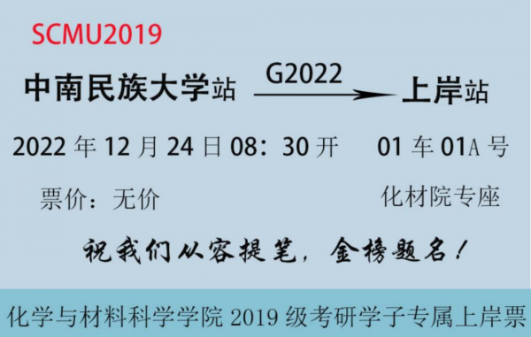 中南民族大学化学与材料科学学院寄语学子考研成功。