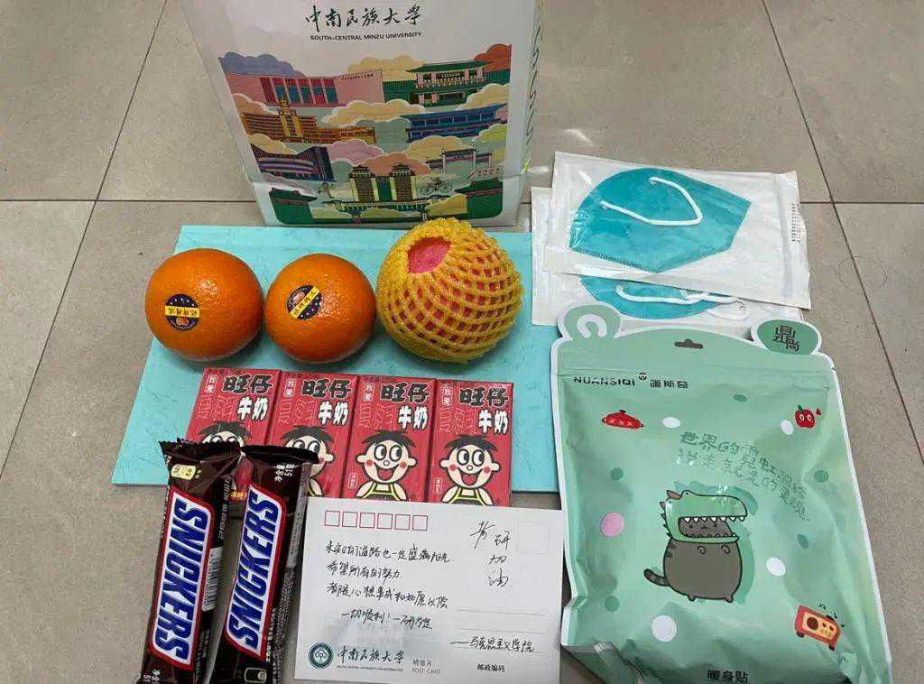 大武汉客户端12月20“研”途漫漫,曙光将至。距离研究生考试还有4天,近日,湖北大学、中南民族大学等高校为仍在校园挑灯苦读的学生们送上暖心礼包,传递美好的祝福和期许。湖北大学为学生准备的考研大礼包。“......