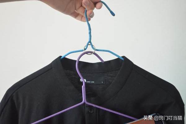 平时家里的衣柜空间小衣服没地方收纳怎么办?我们可以在衣架上面巧改造下,像这样将钥匙圈套在衣架上面,这样就可以再挂一个衣架了,我们就可以垂直挂更多的衣服,大大节省了衣柜的空间,是不是很实用呢?