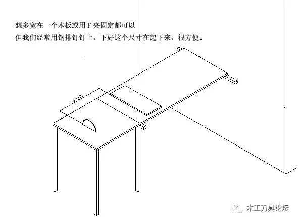 下面随便用木方订个腿就可以,不用太高,当然我这个也可以当圆锯这么用,就是把锯按到板子上,那个靠尺靠住一边,也是非常好用,不会夹锯。