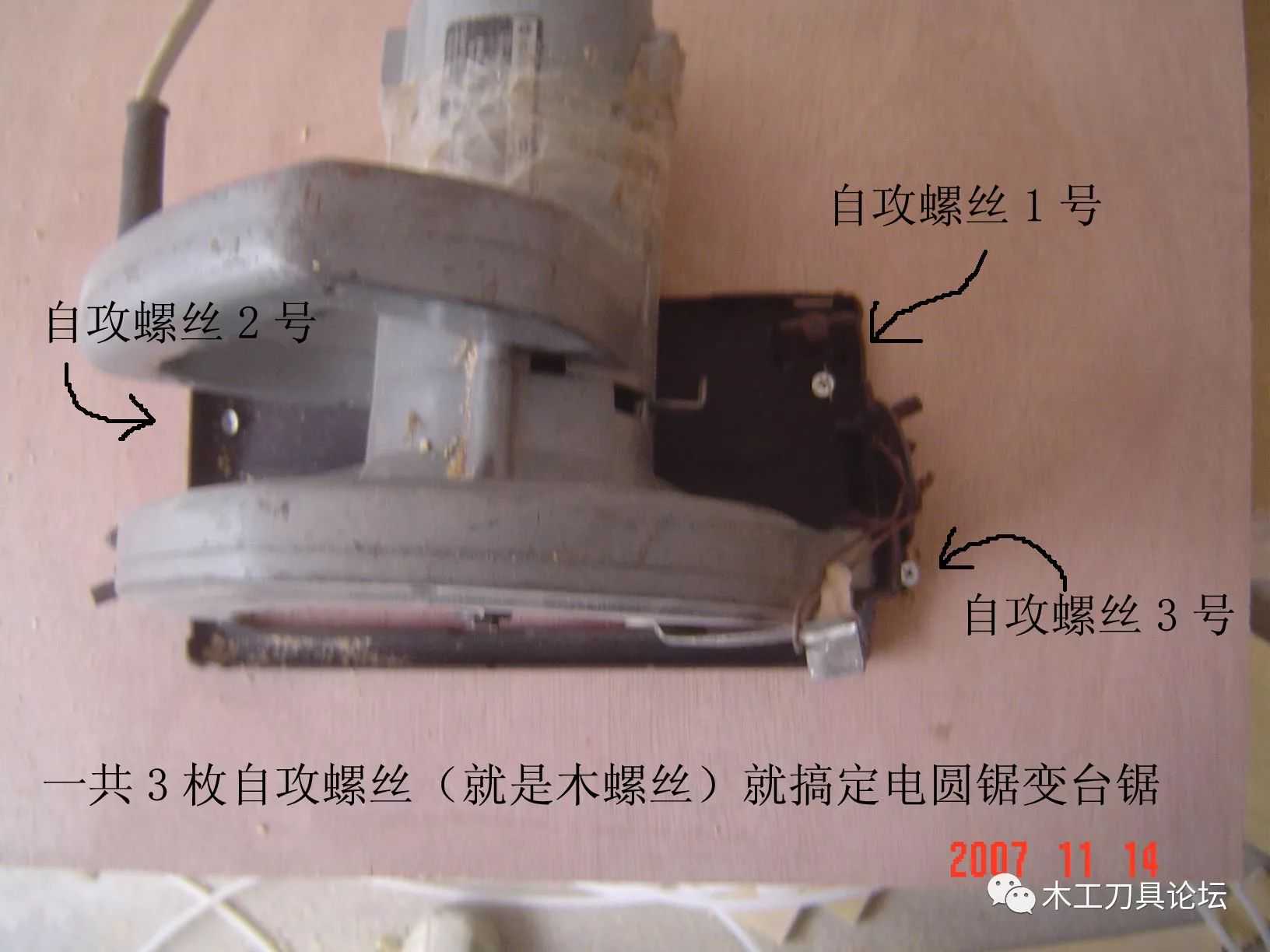 很多朋友问圆锯改台锯的背面如何固定,一直想发个贴,做一些科普教育,但是不是没带相机,就是没赶上用工具,这次正好赶上了。