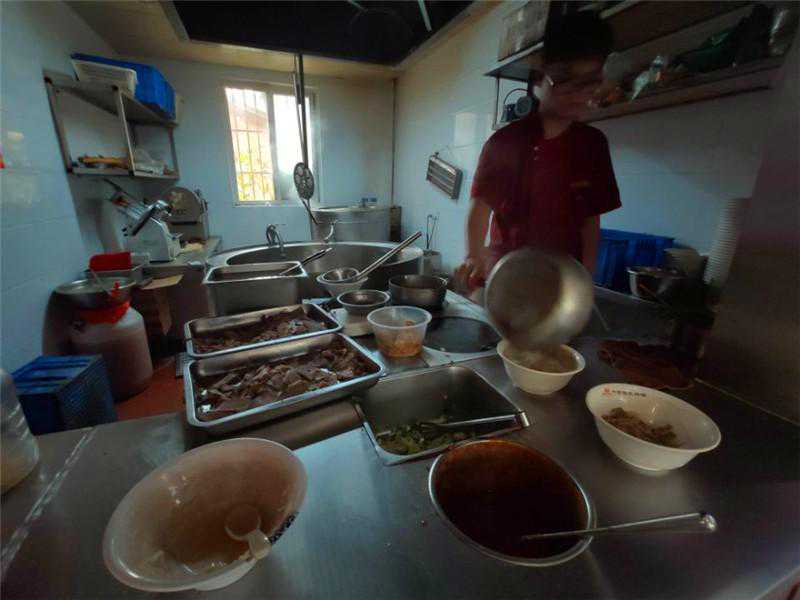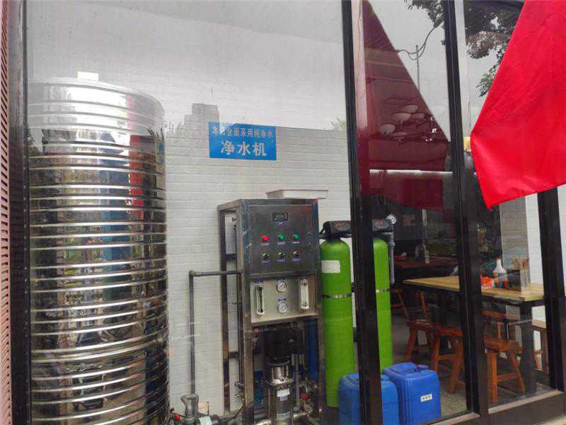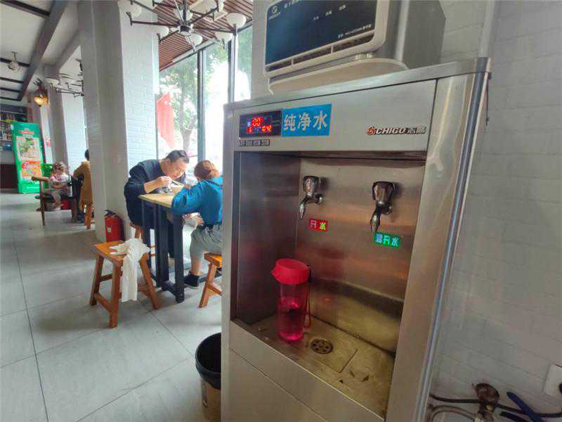 刚停下车子,透过玻璃窗看到“本店全部采用纯净水”的贴标,然后就看到一套过滤水的净水设备,顿时感到这家店的牛肉汤应该不错。
