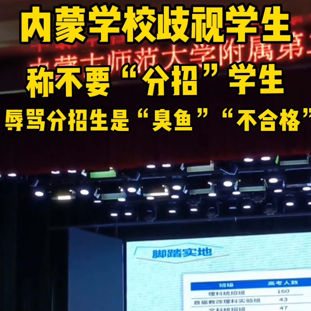 内蒙古一学校歧视学生,声称不招分招生。该学校称分招生为“臭鱼”,并称其“不合格”。我们学校坚决不招收分招生。我说一句不太好听的话,叫“一条鱼腥一锅汤”。如果有不合格的孩子进入某个班级,会对班级的团队产......
