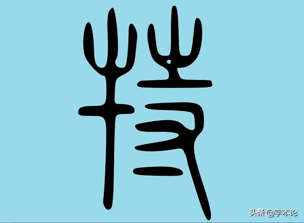 所以,我们有必要说一说这些字的共同部件。为了更为清晰地看清这些汉字所含有的共同部件的古形体,我们把其中的四个字的古形体放大如下: