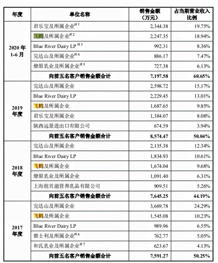 经过多年发展,公司也积累了一定的客户资源,主要客户包括飞鹤、君乐宝、贝因美、完达山、蒙牛(雅士利)、BlueRiverDairyLP等国内外知名乳制品企业。