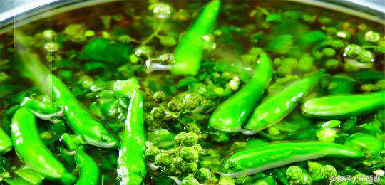椒1.5千克,切块的泡椒30千克,拍过泡姜17.5千克,四川酸泡青