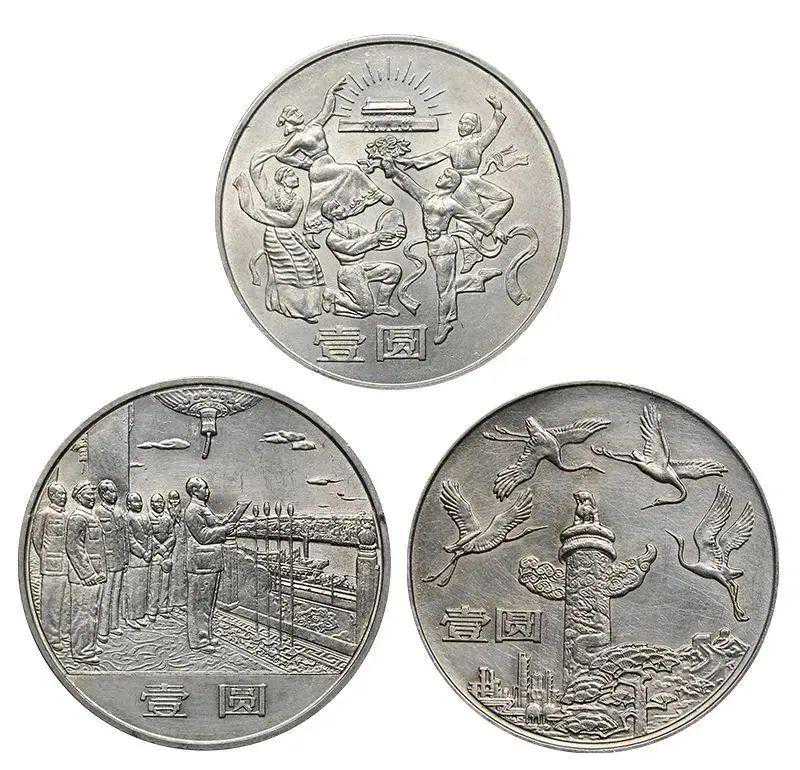一套3枚,币面图案分别是华表、大典、民族团结,面值都是1元,但发行量各不相同,其中开国大典仅发行209.2万枚。也就是说,这套币最多也就200多万套。