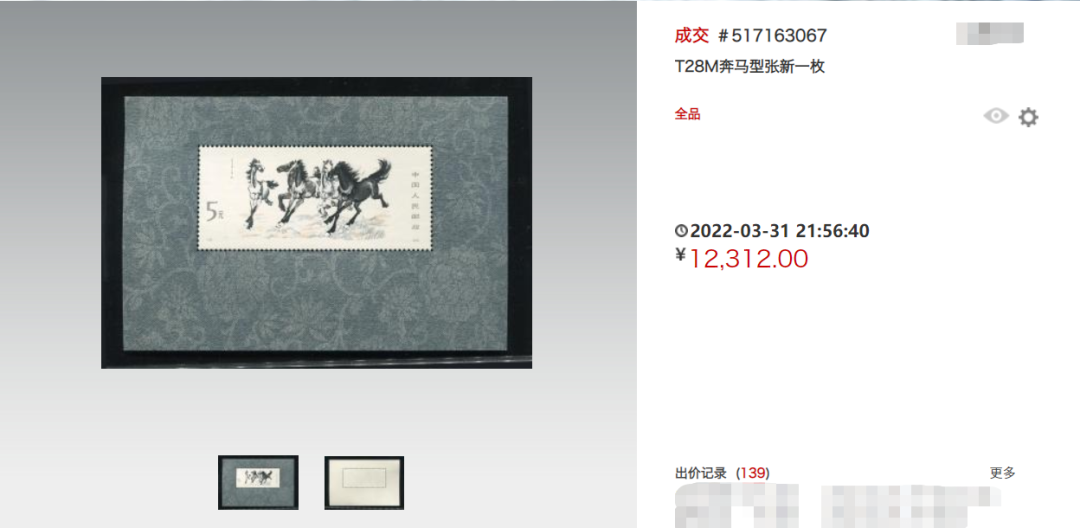 老邮票疯涨奔马小型张,去年4000多一枚,今年就要12312元成交!翻了3倍左右!