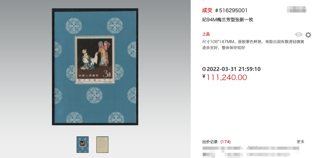 梅兰芳小型张,去年6月6万左右,上月月末11万+成交!