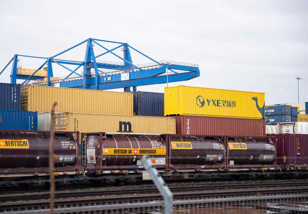 位于莱茵河西岸的杜伊斯堡港DIT货运场站,是中欧班列的主要操作场站。目前,每周约有60列中欧班列抵达这里。数台几十米高的起重机和各类装卸设备紧密配合作业,将卸下的集装箱码放整齐,形成一座座连绵不绝的“小山”。随后,这些跋涉万里、种类丰富的中国货品通过水路、铁路或公路运输,送往周边城市和其他欧洲国家。