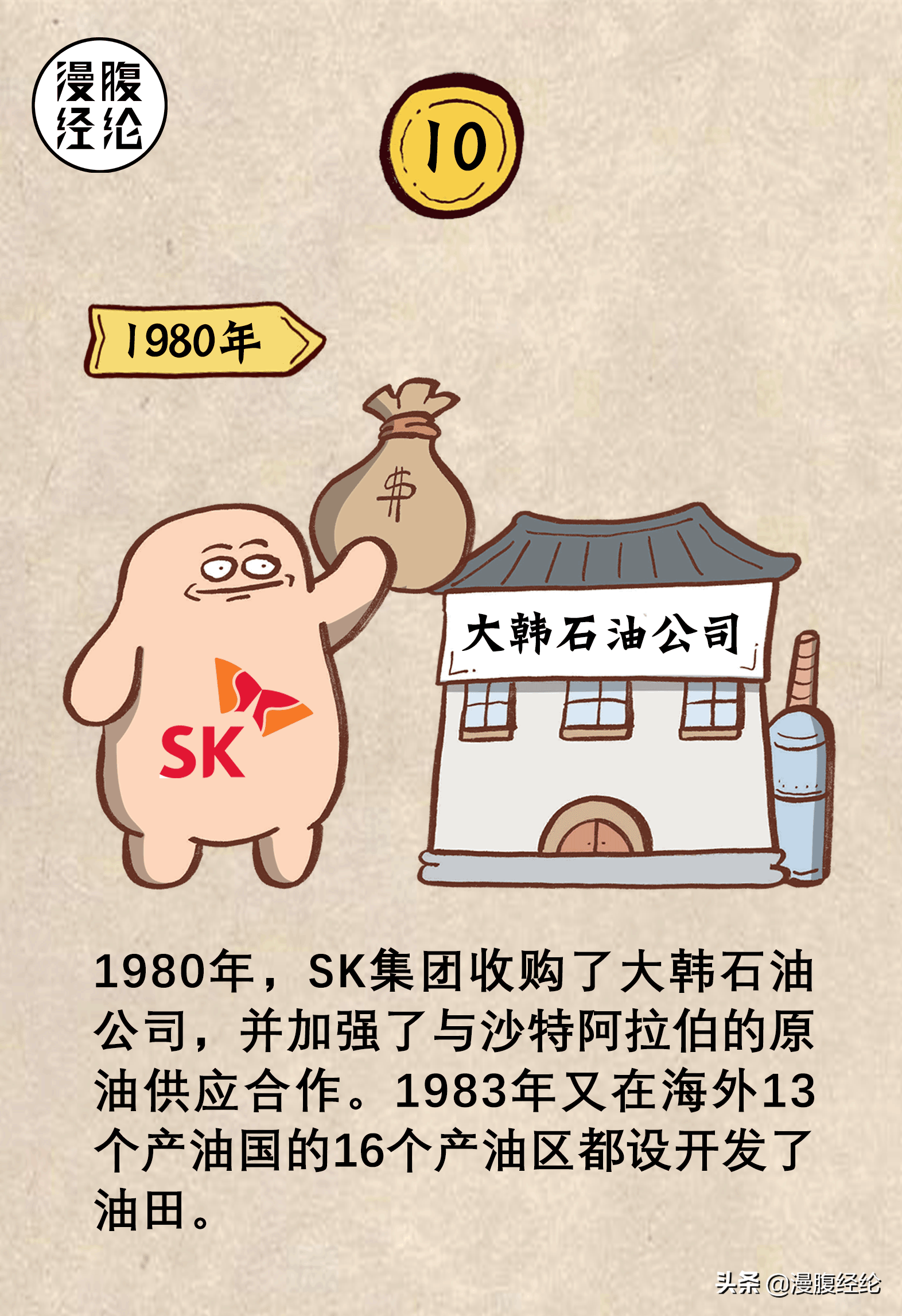 --1980年,SK集团收购了大韩石油公司,并加强了与沙特阿拉伯的原油供应合作。1983年又在海外13个产油国的16个产油区都设开发了油田。