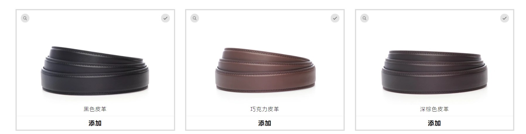 然后第二步,它会让你选择皮带的颜色和材质,选择十分丰富,各种材质和颜色都有。