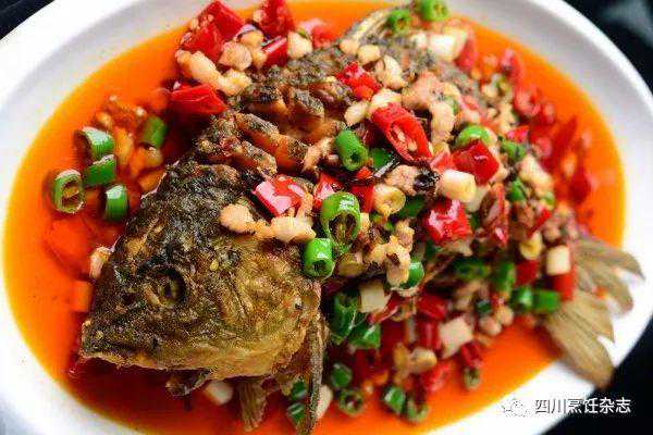 2.锅里放化猪油烧热,先投入干花椒炝香,再下入家常豆瓣酱、泡青菜丝、泡椒节、泡姜米、蒜瓣、花椒和青椒节一起翻炒匀,待掺鲜汤烧开后,下入鲤鱼块并转小火烧至其熟透,其间放盐、味精、鸡粉和胡椒粉调味,出锅前用湿淀粉勾薄芡,装盘后撒入香葱节便好。
