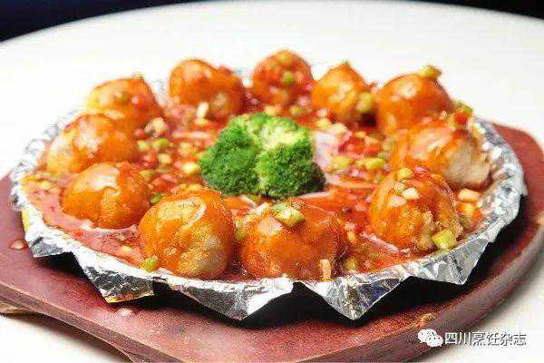 传统川菜里边的豆瓣鱼,多是用整鱼去制作,而这里却是将鲤鱼斩成块后,入盆加红苕淀粉和干姜粉(把小黄姜经过干燥加工出来的粉末)腌渍,成菜口感滑嫩、入味更深。