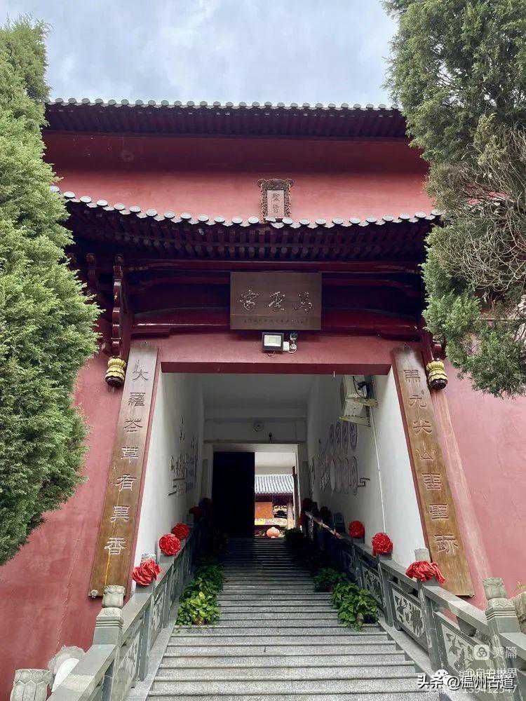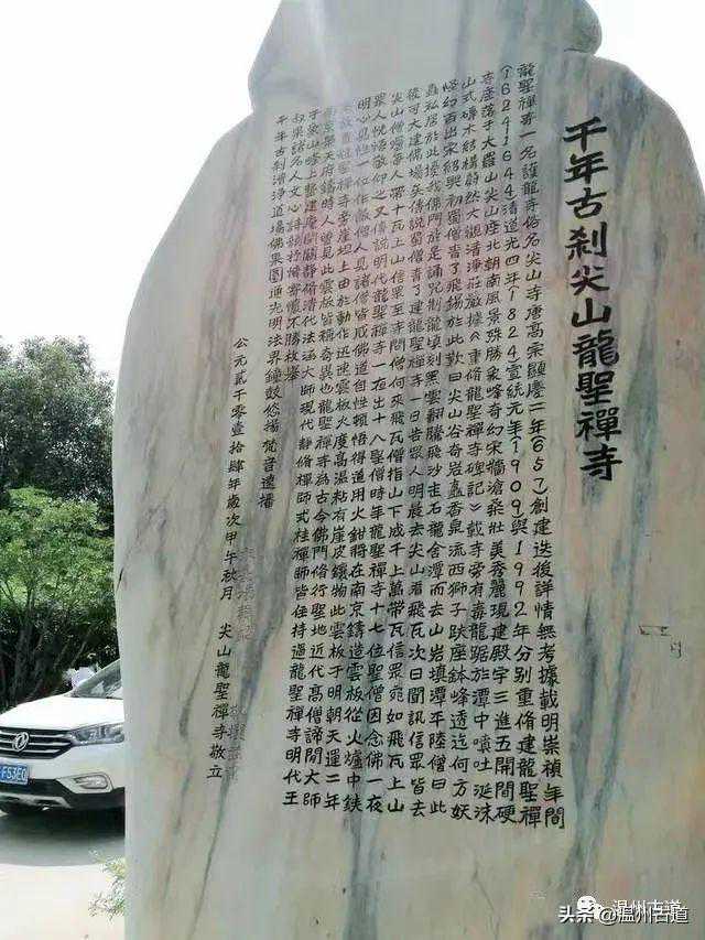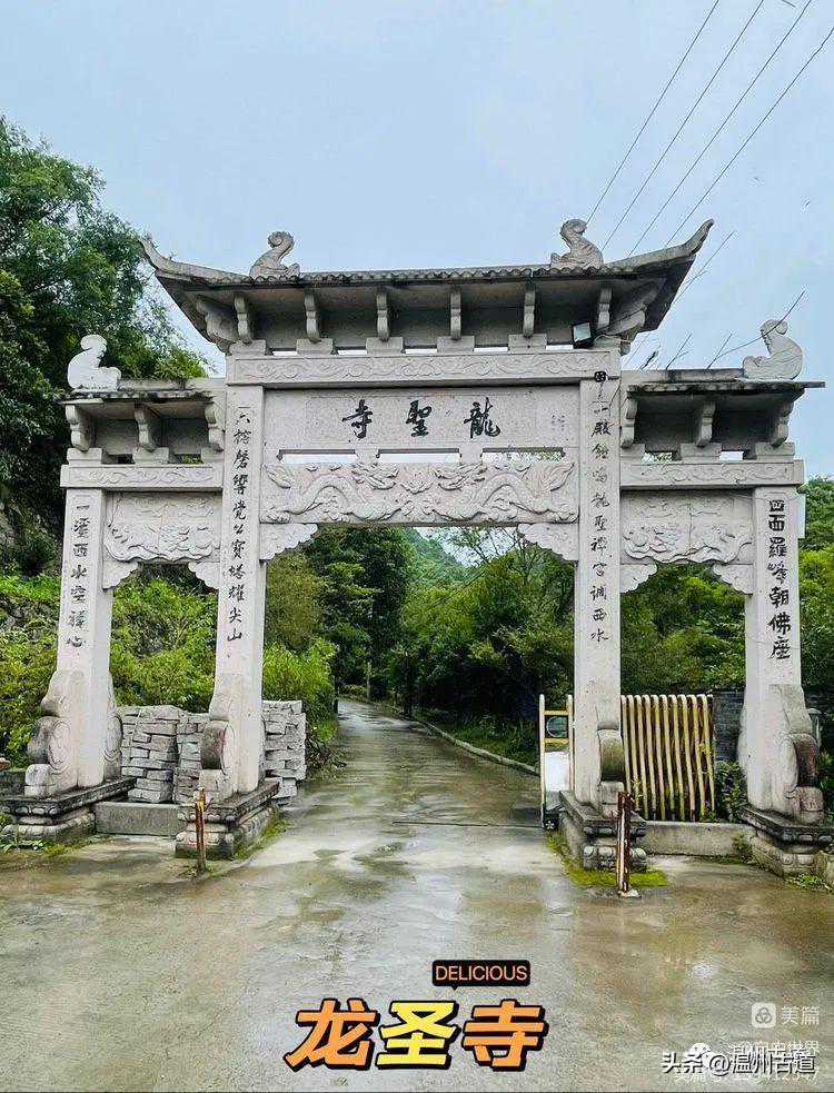经过千年古刹龙圣寺。龙圣寺一名护龙寺,嘉庆《瑞安县志》载:“龙圣寺,在大罗山,俗名尖山寺,唐显庆间建,明崇祯间重建。”民国《瑞安县志稿》载:“龙圣禅寺原名尖山寺,唐显庆间始建,明崇祯、清道光甲申年间重建,宣统元年重修五间二进,轩二间、田二十亩”。现存寺院建筑格局于2002年在原遗址上重建,仅庙宇台基为清乾隆年间建筑。