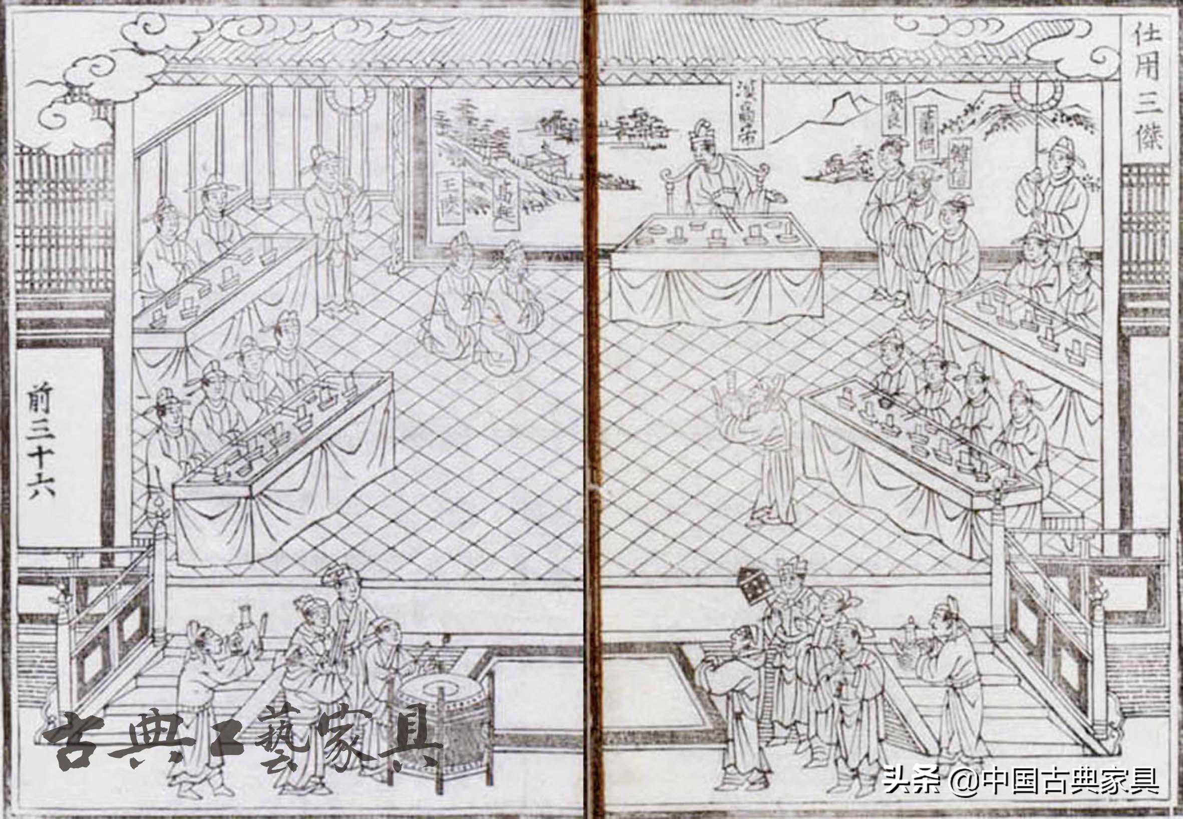北宋真宗时期丁谓事件后一百多年,金兵南下攻破汴京,将宋徽宗、钦宗二帝掳到五国城去。风雨飘遥的宋室辗转南渡到临安(今杭州),为南宋。据南宋的《南宋馆阁录》记临安朝廷的陈设,除皇帝御座、御案外,其他各处的轩堂,不是“金漆椅十二”,就是“金漆椅、棹、脚踏各十四”等,如此动辄数张以上的坐具,又各搭配长桌、脚踏,当非皇帝一人所用,应为多人办公之所。