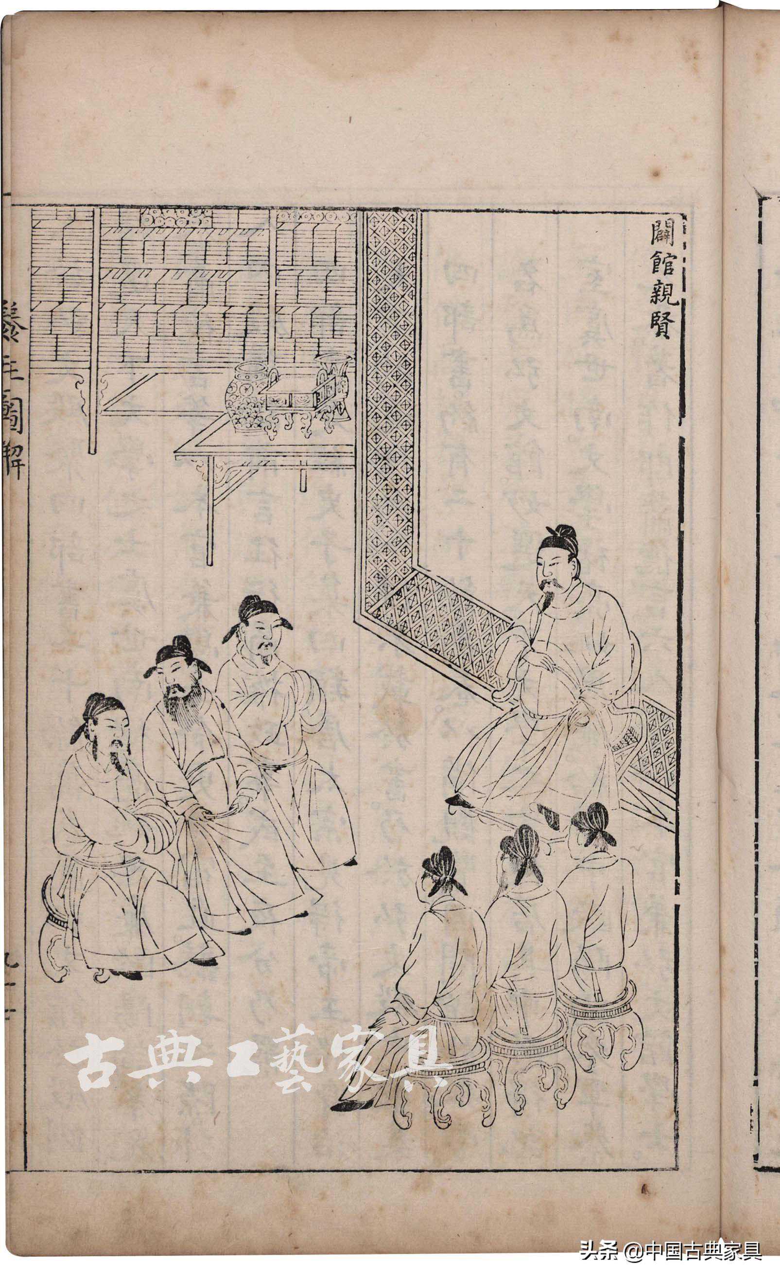 图5明丁云鹏绘《辟馆亲贤》(引自《养正图解》,焦竑撰、丁云鹏绘图。明万历22年吴怀让刊本)