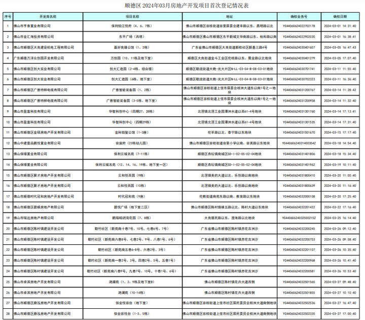 据乐居整理,佛山3月确权项目总计35个,恒大、龙光、海伦堡、金科、越秀等多个项目均迎来了首次登记。