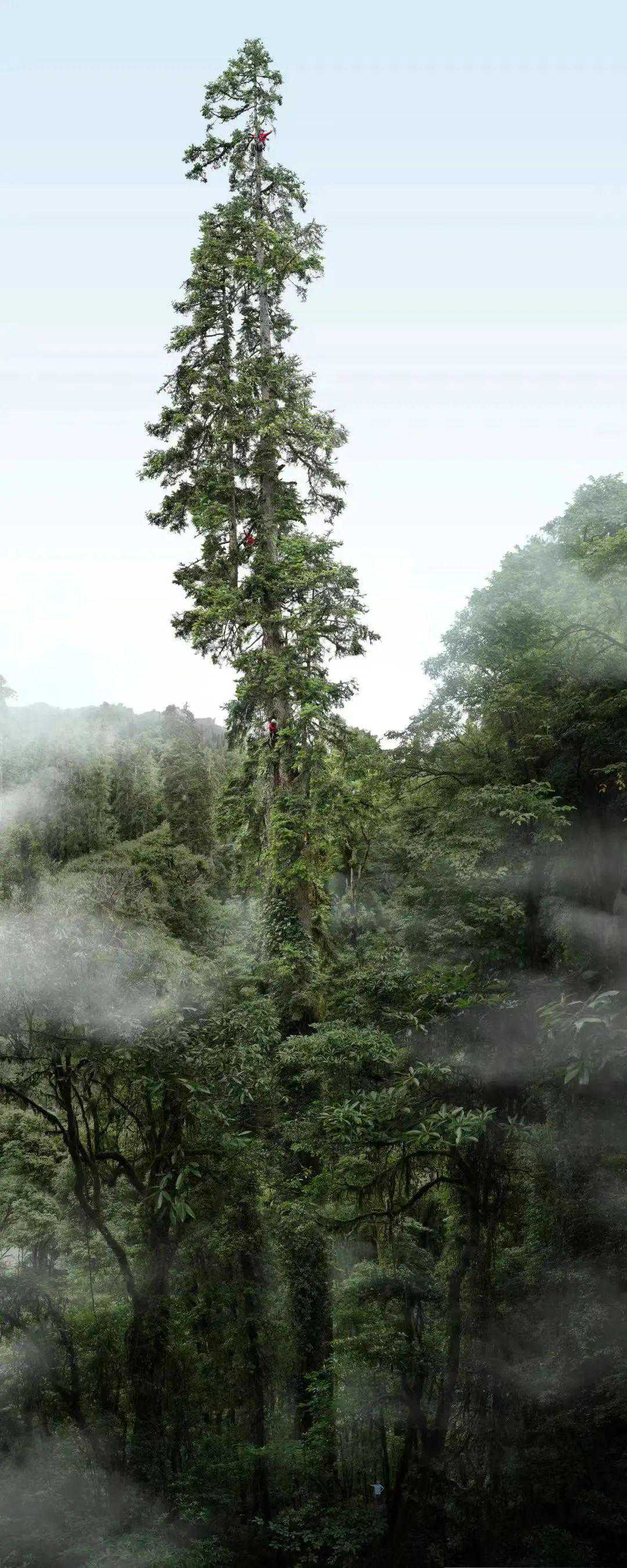 中国巨树云南黄果冷杉等身照,高度83.4米。摄影及合成:“野性中国”工作室