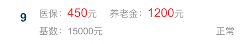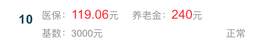 看不懂没关系,给你举2个例子就明白了。亮亮在北京一个创业公司工作,他一个月赚15000,但是公司给的社保基数是3000,这是他的社保缴纳情况:
