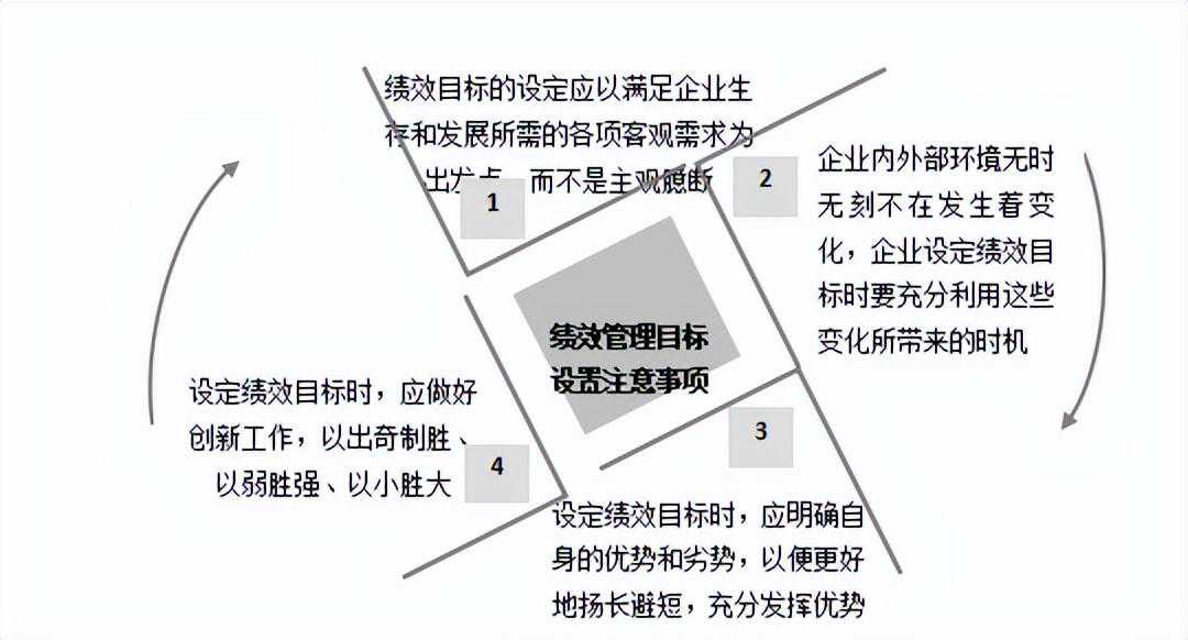 企业在运用以上方法设置目标的过程中应注意以下事项,以使所设置的目标更加合理、更具有可执行性。绩效管理目标设置的具体注意事项如图1-3所示。