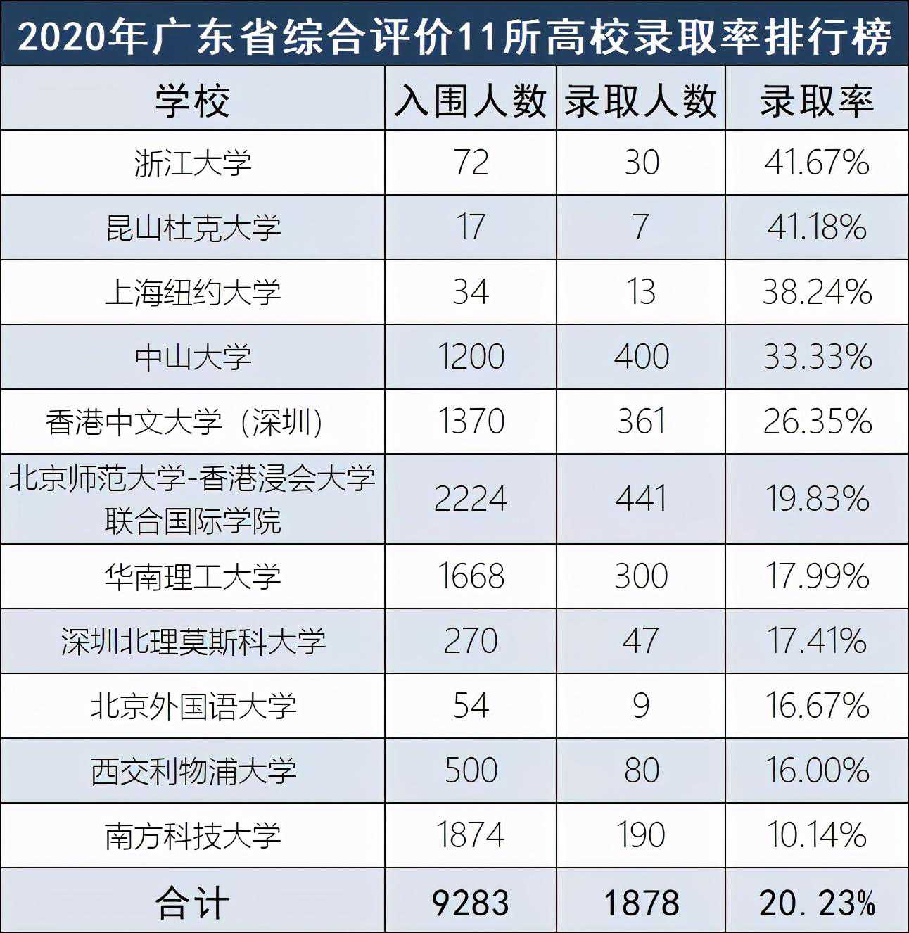 据统计,在广东省开展综合评价招生的11所高校中,共有9283名学生入围,成功录取1878人,录取比例达到20.23%。入围人数最多的学校是北师港浸大,共2224人入选,南科大、华工、中大、港中大(深圳)四校分别有1000人以上入选。