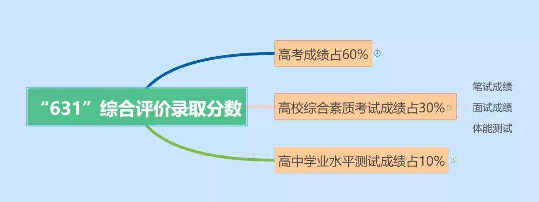 也有高校遵循85:15(85%高考成绩+15%校测成绩)、7:3(70%高考成绩+30%校测成绩)的比例来折算总分,但目前6:3:1仍是主流,故民间称综合评价招生为“631”。