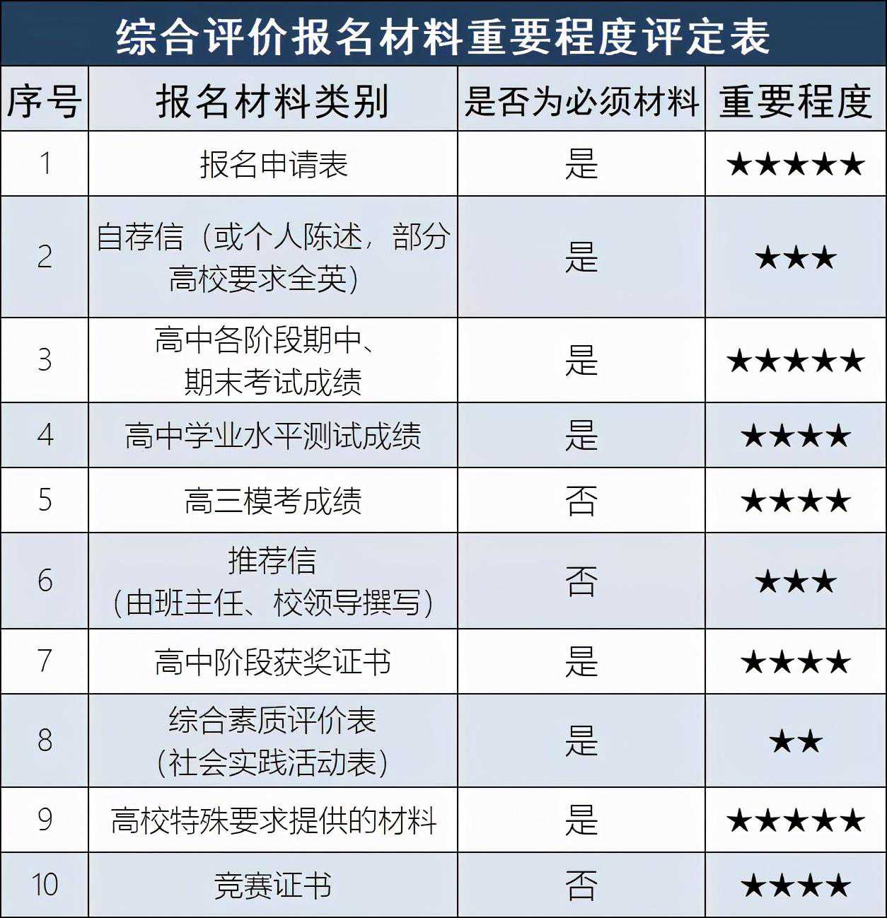 综合成绩优秀是报考综合评价的硬性条件,竞赛奖项、省级证书等作为报考辅助材料,在报名、初审、校测、录取中占有一定优势。