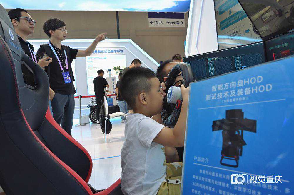 9月6日,重庆国际博览中心,2023中国国际智能产业博览会现场,小朋友正在体验智能方向盘。记者刘旖旎摄/视觉重庆