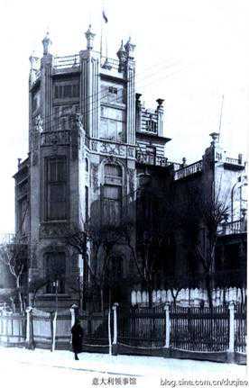 (1926年“意大利驻哈尔滨领事馆”迁至吉林街与夹树街(现民益街)交角处,这是1927拍摄的照片,此建筑现已拆除。)