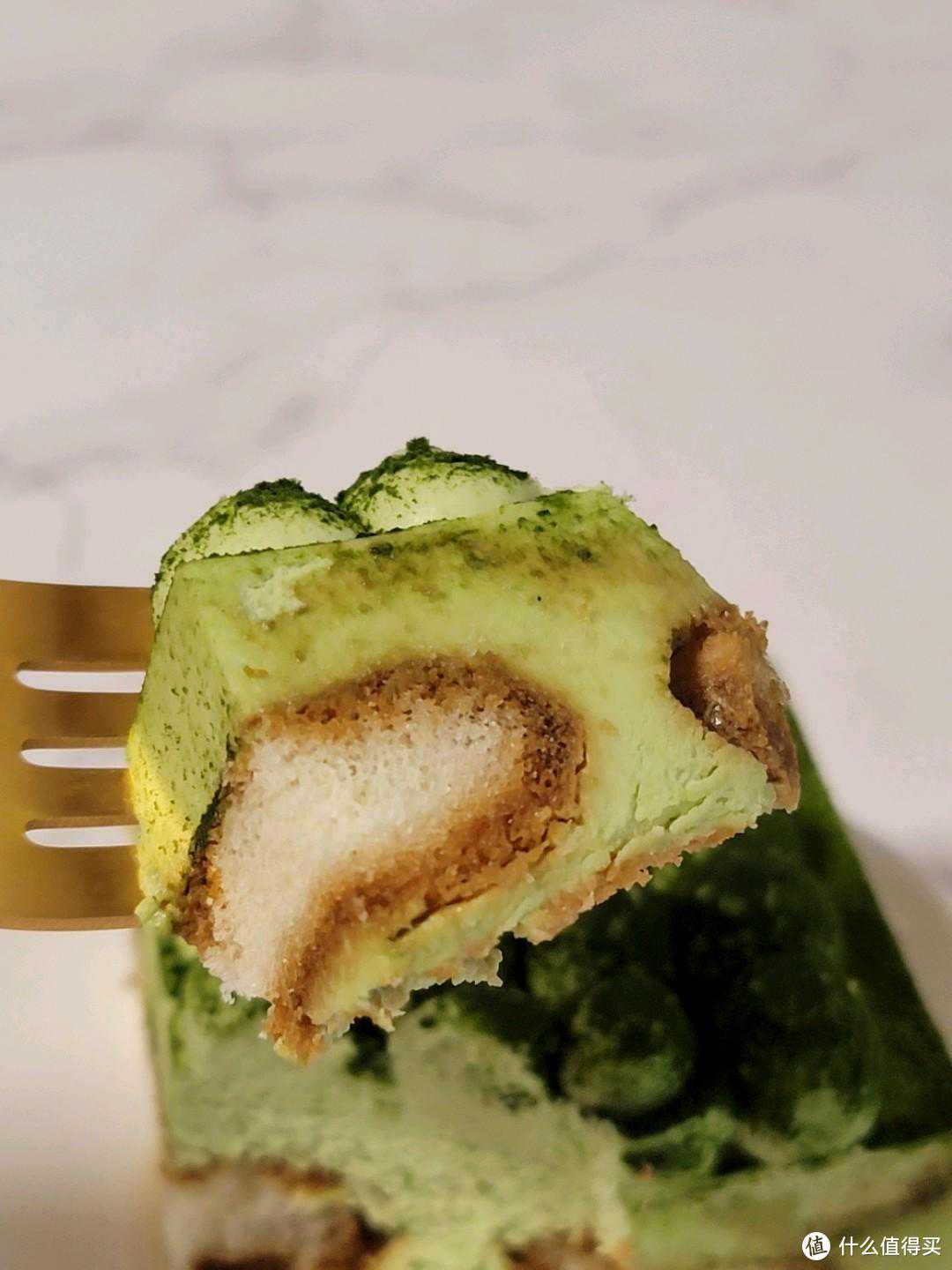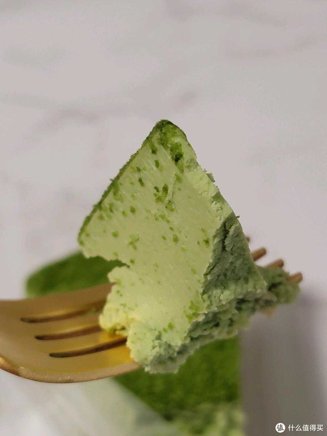 从外观上看就是抹茶本茶了,用小勺子或者小叉子来吃的话一点一点挖下来吃,相对来说质地很硬,不是那种轻松就可以挖下来的感觉。