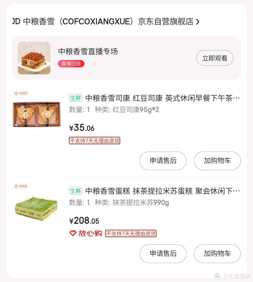 商品名称:中粮香雪蛋糕抹茶芝士蛋糕西式糕点休闲下午茶聚会蛋糕100g*2
