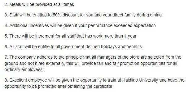 不过,从目前的招聘公告来看,海底捞还是那个海底捞,你能想到的都有!