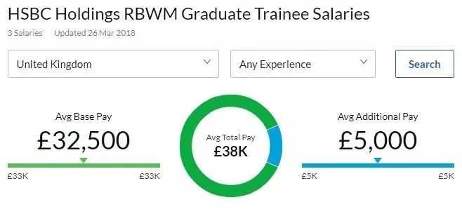 汇丰银行(HSBC)今年的零售和财富管理管培生平均年薪是3.8万英镑。
